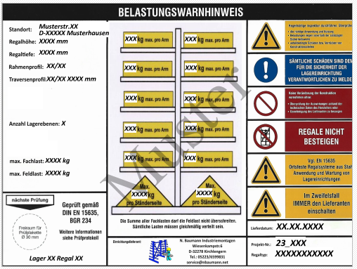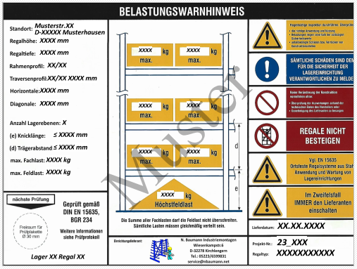 Wir erstellen Belastungsschilder kompl. nach ihren Angaben (Daten)